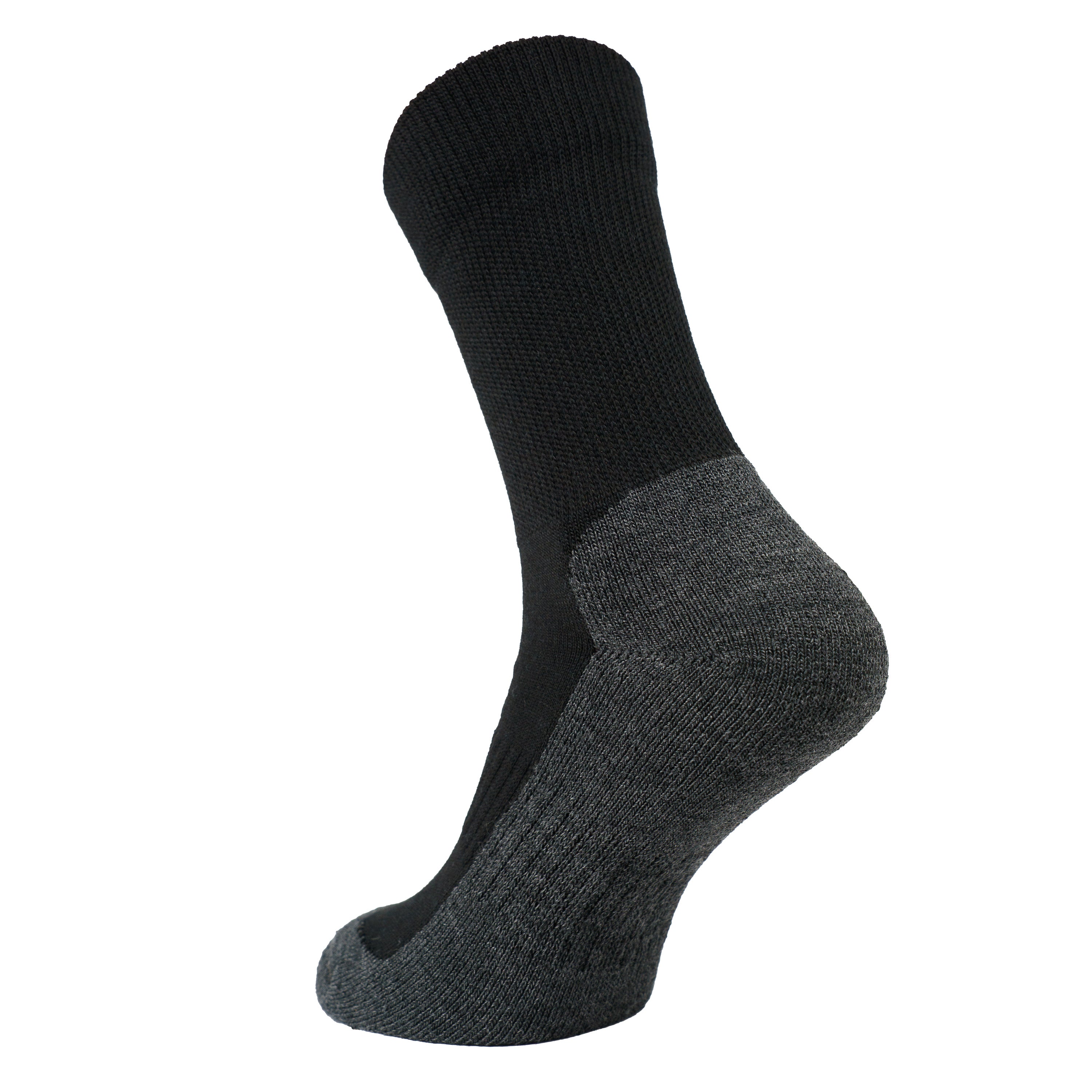 Polsterētas merino vilnas darba zeķes ar stingru piegulumu un pastiprinātu konstrukciju ilgstošam komfortam smagos apstākļos. Silda, elpo un saglabā sausumu visas dienas garumā.