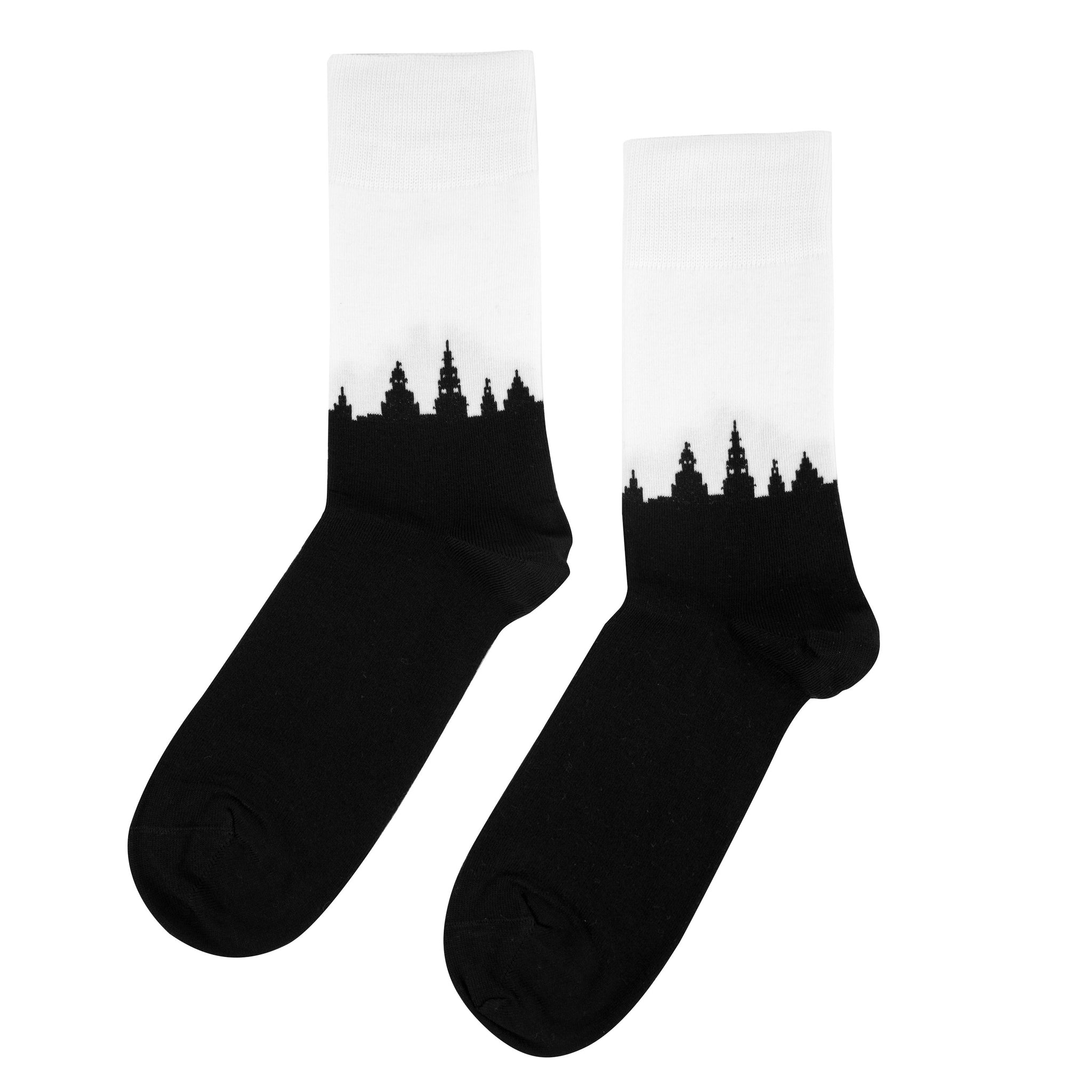 Riia siluetiga sokid on inspireeritud Läti pealinna majesteetlikust ilust. Need kujutavad Riia kuulsat siluetijoont koos ikooniliste arhitektuurimälestiste ja Vana-Riia ajaloolise võluga. Sokid on suurepärane viis Riia kunsti ja ajaloo tüki kandmiseks mugavalt ja stiilselt igapäevaselt.